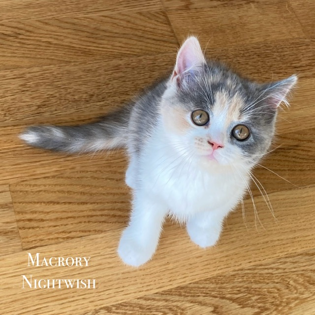 Pesakonna teine imeilus suur tüdruk, sini-kreem kilpkonn valgega. Silmad tulevad suured ja oranžid. Samamoodi oma emme koopia. Nimeks sai Nightwish – nagu kogu selle tähestiku kassipojad, sai ka see pesakond nimed erinevate bändide järgi. Oma õega on nad pea äravahetamiseni sarnased, kes tihti isegi grammi pealt sama palju kaaluvad. Siiski on vahe iseloomus – Nightwish on alati mänguks valmis ja ta on natukene aktiivsem. Nightwish oskab kenasti käia liivakastis, süüa krõbinaid ja konserve. Tema on leidnud endale armastava pere.