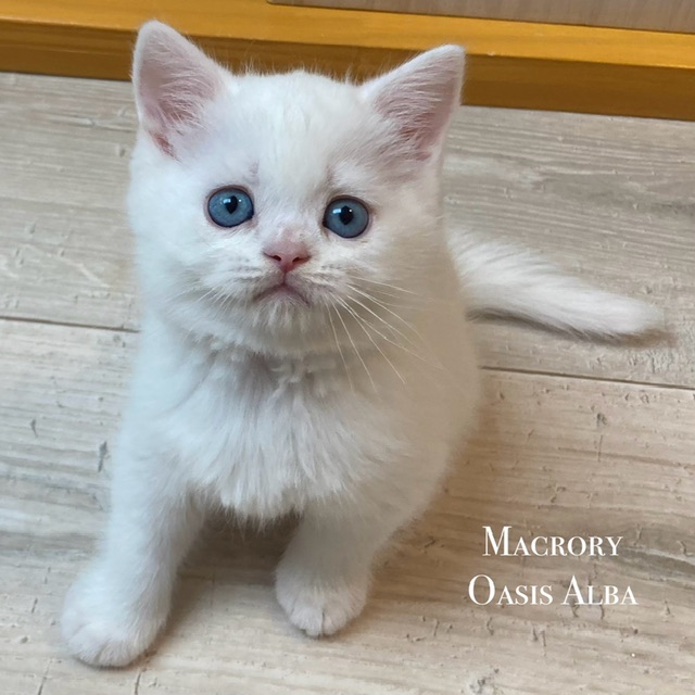 Pesakonna O4 valge poiss imeilusate siniste suurte silmadega. Valgetel kassidel võivad tulla kas oranžid, eri värvi või sinised silmad. Temal ja ka õel sattusid just haruldased sinised. Oasis on tegus poiss, õppis kiirelt ilusti krõbinaid sööma, armastab konserve. Nüüdseks käib juba ilusti liivakastis, krapsib õiges kohas küüsi. Pesakonnast kõige julgem. Sobiks hästi ka väikeste lastega kodusse. Oasis on saadaval armastavale perele kas lemmikuks või näituselemmikus. Sobib ka aretusse (ainult registreeritud kasvandused). Hind lemmikuks 1 800 eur.