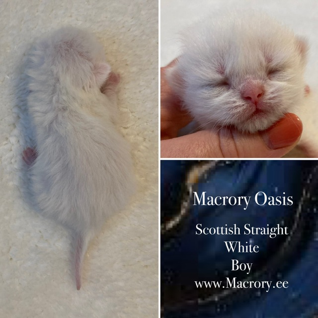 Pesakonna O4 valge poiss, silmade värv on veel selgumas. Meie armsa Xena esimene pesakond. Kassipojad kõik aktiivsed ja tublid. Oasis on saadaval armastavale perele. Hind 1 800 eur.
