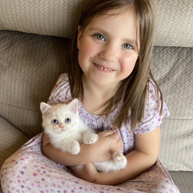 One of the two females in O4. Our little snow white. The colour of her eyes is still to be determined. Available to a good family.